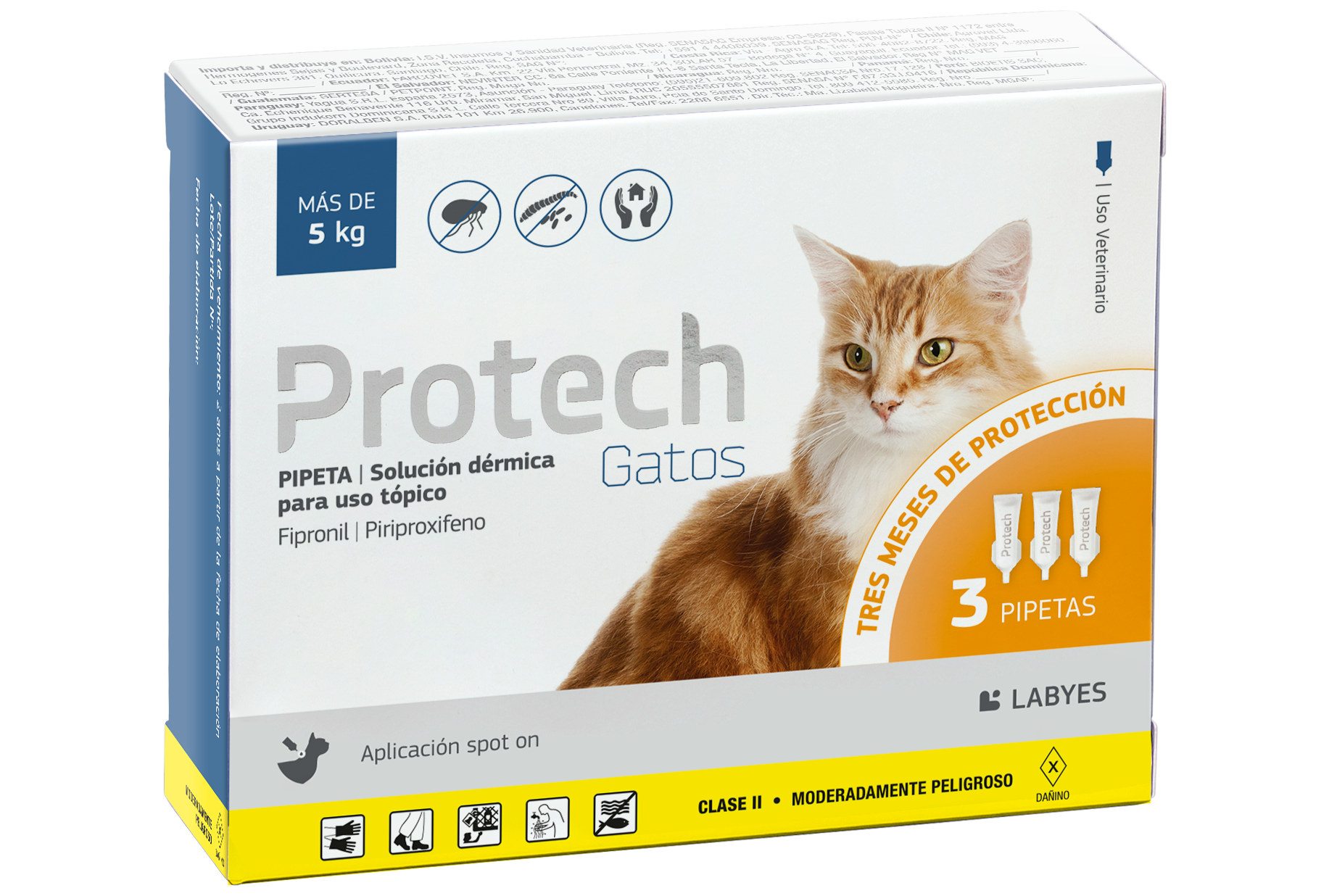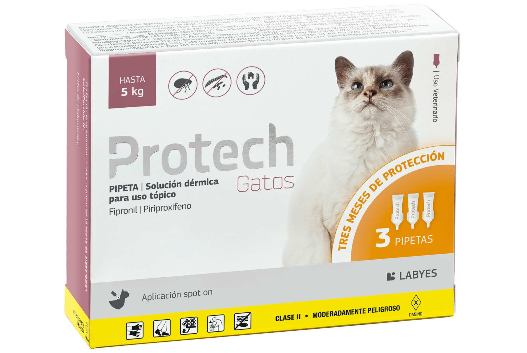 Indicada en gatos a partir de las 12 semanas de vida y de 1 kg de peso, hembras en lactancia, animales enfermos o debilitados Aplicación mensual.